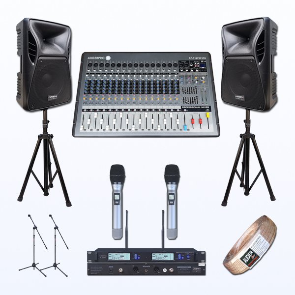 Sebuah hasil karya desain generasi terbaru AUDERPRO dengan ini menghadirkan Power Mixer Professional AKORD AP-9XXPM USB Series (produk unggulan ini dilengkapi slot media pemutar USB / bisa rekam menggunakan Flashdisk, sebagai soundcard koneksi komputer, bluetooth dan terdapat LCD display indikator sebagai fitur utama). Terdapat 24 bit digital efek processor (16 DSP) dan SOLO system.