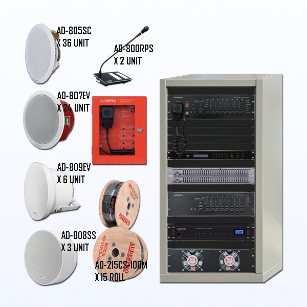 Paket BEVA-7 Sound System Paging + BGM + Evacuation AUDERPRO EVA 8 - 16 Zone, Terdiri Dari: