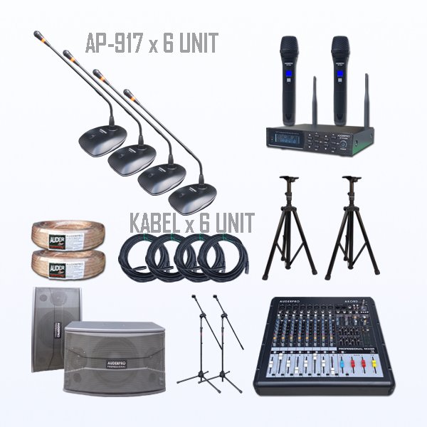 Paket BM-6 Mic Meja Kabel AUDERPRO AP-917 Pakai 6 Mikrofon + Sound System, Terdiri Dari:
