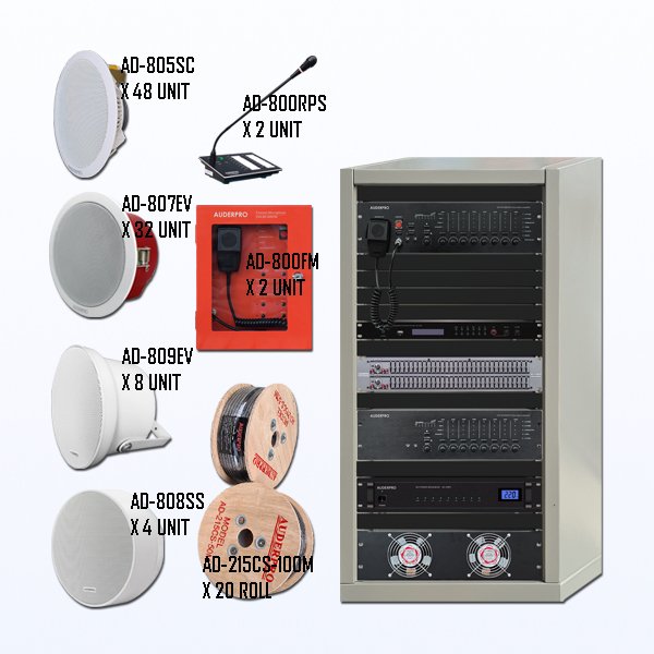 Paket BEVA-5 Sound System Paging + BGM + Evacuation AUDERPRO EVA 8 - 16 Zone, Terdiri Dari: